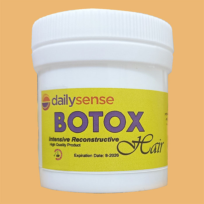 بوتاکس مو دیلی سنس در واقع یک نرم کننده عمیق است که الیاف مو را با یک ماده پر کننده مانند کراتین پوشانده است. در این روش، هر قسمت شکسته یا نازک روی هر تار مو را پر می کند تا موها پر و براق تر به نظر برسند. بوتاکس مو برای درمان موخوره مناسب است. به طور کلی بوتاکس مو برای هر نوع مویی ایمن در نظر گرفته شده است. این محصول مناسب انواع مو های رنگ شده، دکلره، سوخته، آسیب دیده و کشسان می باشد که با فرمولاسیون منحصر به فرد خود وزی و موخوره مو را به طور کامل درمان و ساختار مو را بازسازی میکند. مراحل استفاده: 1- موها را در مرحله اول آبکشی کنید و با شامپو قلیایی 2 بار موها را شست و شو و ماساژ دهید، مو هارا به صورت پایین به بالا ماساژ دهید(این کار باعث میشود فولیکول مو راحت تر باز شود و مواد بوتاکس مو دیلی سنس خاصیت جذب بالاتری بگیرد. 2- موهارا تا %90 خشک کنید. ( برای راحتی کار بهتر است براشینگ حرفه ای انجام دهید تا جداسازی و مواد گذاری را راحت تر انجام دهید) بسته به میزان حجم مو، موهارا به دسته های 4 تا 6 تایی تقسیم کنید. با استفاده از شانه مخصوص تار های مو را از پشت سر به صورت نازک جدا کنید. از یک سانتی متر مانده به ریشه موادگذاری بوتاکس مو دیلی سنس را از پشت سر به سمت جلو شروع کنید. 3- بعد از پایان مواد گذاری موهارا با کلاه رنگ جمع کنید و 30 الی 60 دقیقه مکث دهید. بعد از مکث موها را با آب خالی شست و شو دهید تا زمانی که فقط %30 از مواد روی مو باقی بماند. موها را کاملا با سشوار خشک کرده و براشینگ کنید. 4- موها را دسته بندی کنید و از پشت سر شروع به اتو کشی کنید. توجه داشته باشید که اتو کشی بوتاکس باید ضعیف تر از کراتین باشد. دمای اتو برای کسانی که مو های خشک و طبیعی دارند روی 220 تنظیم شود و بین 10 تا 12 بار اتو کشی شود. دمای اتو برای کسانی که موهای رنگ شده و نرمال دارند 210 تنظیم شود و بین 8 تا 10 بار اتو کشی شود. دمای اتو برای کسانی که موهای دکلره شده و آسیب دیده دارند بین 200 تا 190 تنظیم شود و بین 5 تا 8 بار اتو کشی شود. توجه: این محصول 110 میلی لیتر و برای موهای متوسط مناسب است. در صورت داشتن موی بلند، تعداد دو عدد این محصول را خریداری نمایید.