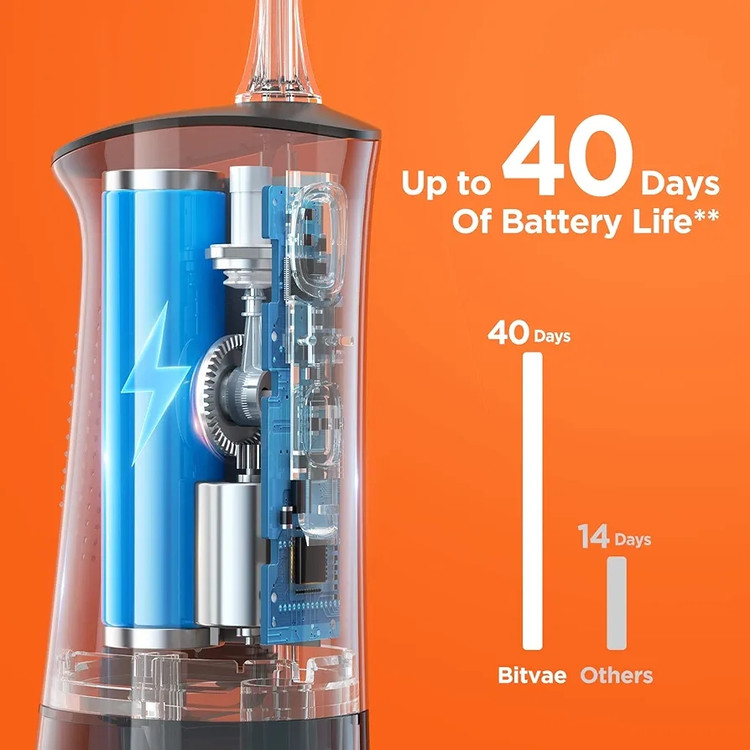 دستگاه واترفلاسر C2 بیتوی، دارای مخزن دهان عریض برای تمیز کردن آسان میباشد. زیرا تمیز نگه داشتن واترفلاسر شما به اندازه تمیز نگه داشتن دهان مهم است. با ارتقاء مخزن آب دهانه گشاد جداشدنی، کاربران می توانند رسوب آب در مخزن را به طور کامل تمیز کنند، که این امر برای واترفلاسر های قدیمی با دهانه کوچک غیر ممکن است. واترفلاسر C2 دارای مخزن آب با ظرفیت بالا میباشد، که برای تمیز کردن کامل دهان به مدت 60 ثانیه کافی است و نیازی به پر کردن مجدد آب نیست. واترفلاسر C2 دارای عمر باتری پیشرفته 40 روزه میباشد و باتری می تواند تا 40 روز شارژ را نگه دارد. طراحی بی سیم، استفاده از آن را هم در خانه و هم در حین حرکت راحت می کند. از جمله ویژگی های کلیدی دستگاه، میتوان به تنظیمات فشار در 3 حالت عملکردی اشاره کرد. با مودهای عملکردی، دستگاه قابلیت تنظیم فشار در طیف وسیعی (30-100 PSI) را به شما اراِه میدهد. دستگاه شامل 6 نازل قابل تعویض (همچنین نازل زبانشوی) میباشد و نازل ها قابلیت چرخش 360 درجه را دارا میباشند.و این امکان را فراهم میکند که تمامی اعضای خانواده از دستگاه استفاده کنند. دستگاه واترفلاسر C2 استاندارد IPX7 ضدآب را دارا میباشد که قابلیت شستشو و استفاده در حمام را فراهم می کند. شارژ دستگاه با کابل USB صورت میگیرد، و طراحی دستگاه بی صدا میباشد. طراحی ارگونومیک دستگاه، امکان حمل آن را برای مسافرت و حمام های کوچک عالی می کند، و کاربران هنگام برداشتن آن احساس راحتی بیشتری خواهند کرد.